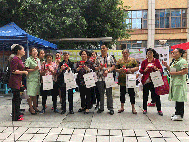 2018年的金秋,正逢中秋、國慶、重陽三節的到來,聽覺有道全國連鎖四川分區的驗配師們在四川分區各地區門店進行《助聽公益行》活動。各服務中心分別走進社區、走入老人院、親臨老年活動中心,走上街頭為市民們宣講聽力健康預防與保護,也為市民們提供免費的聽力健康咨詢及耳部基礎檢查、視頻耳部檢查、免費額聽力檢查及血壓測試等。